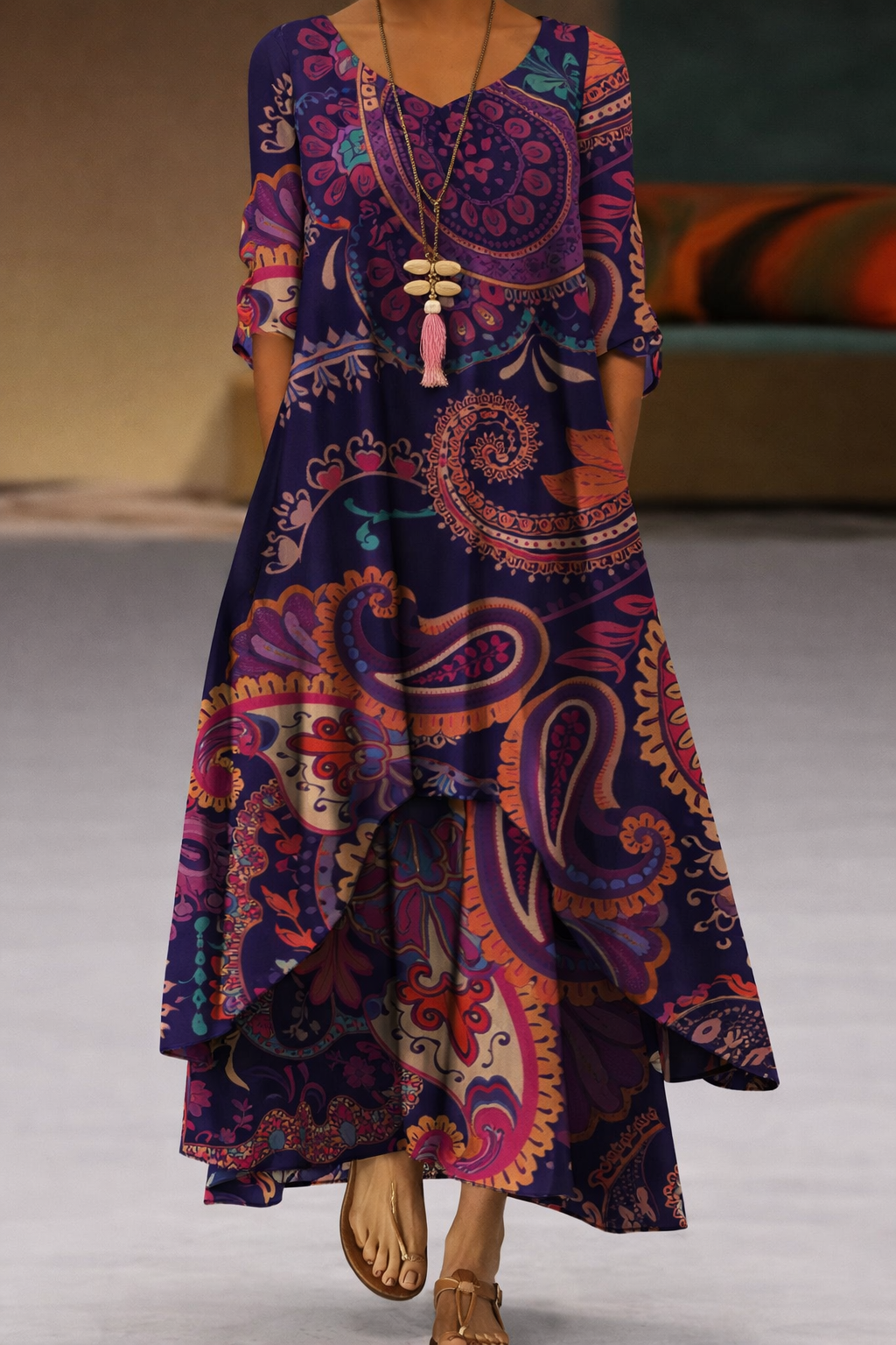 Andrea's™ | Abstraktes bedrucktes Maxikleid mit langen Ärmeln