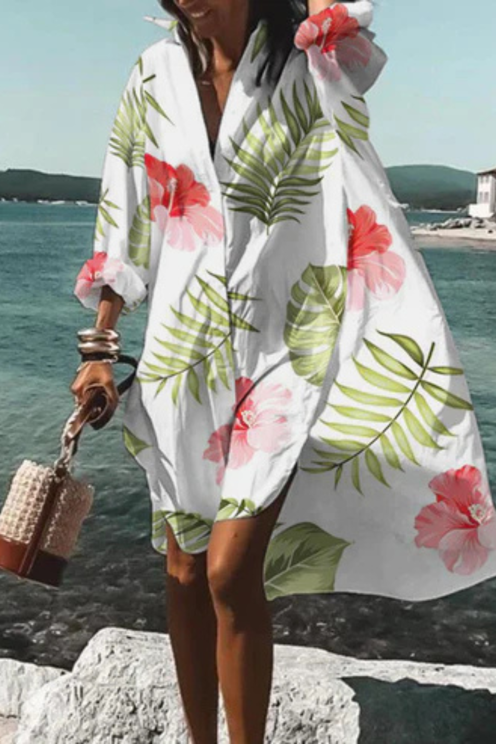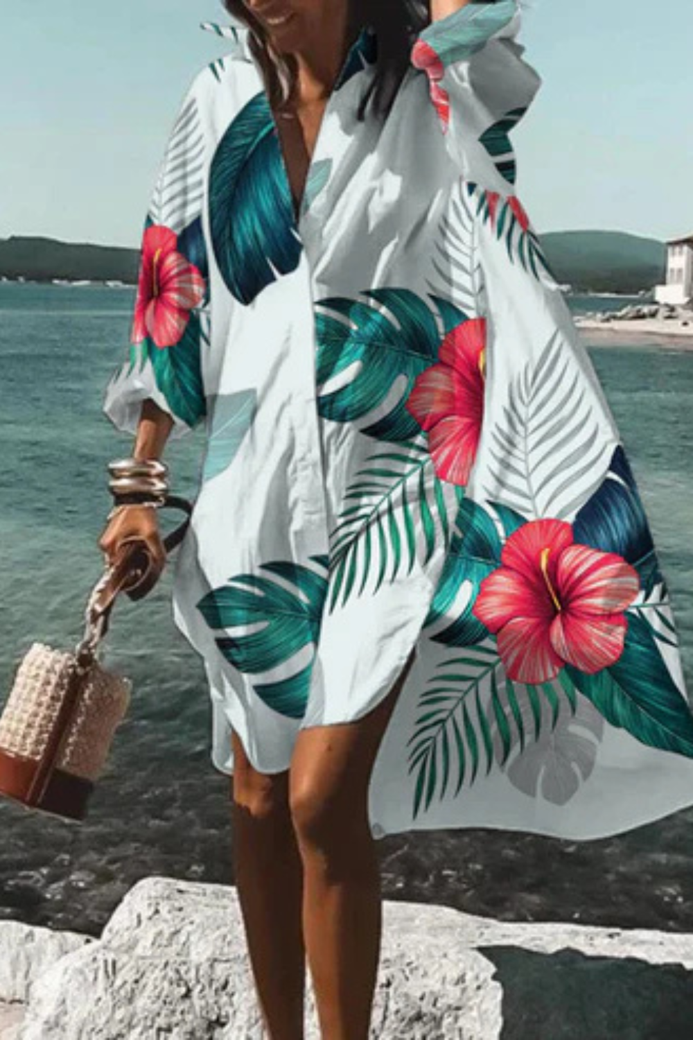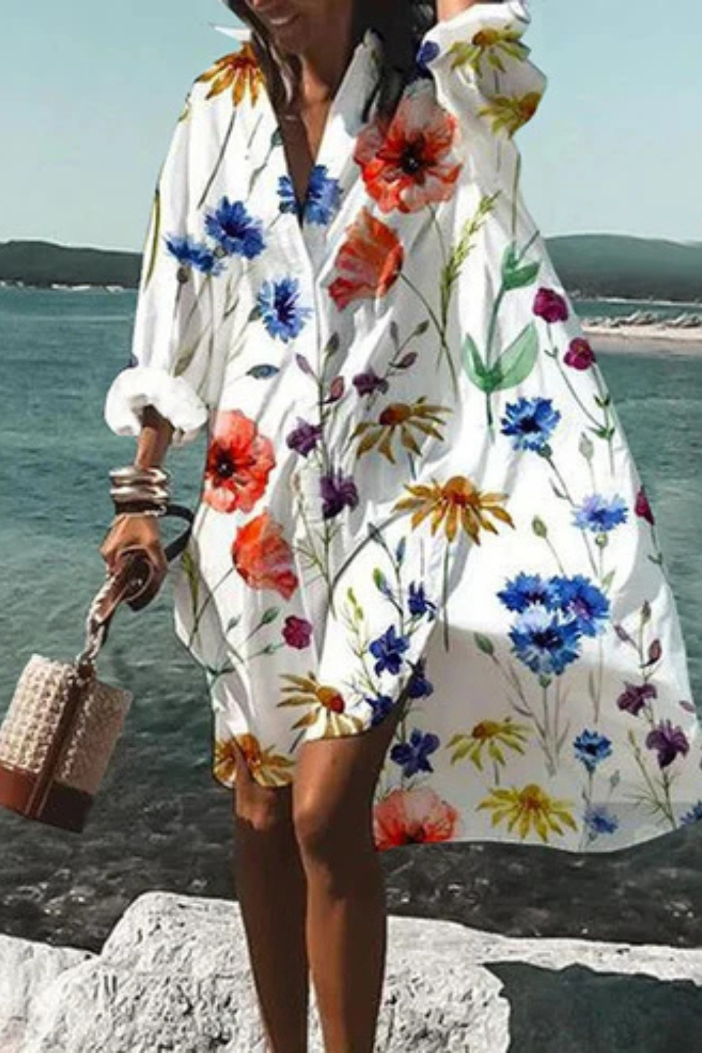 Dieses Kleid vereint sommerliche Leichtigkeit mit moderner Eleganz. Der lockere Schnitt und der ausdrucksstarke Blumenprint machen es zum idealen Begleiter für Urlaubstage, Spaziergänge am Meer oder stilvolle Alltagslooks. Die fließende Form sorgt für Bewegungsfreiheit und eine mühelos feminine Ausstrahlung.