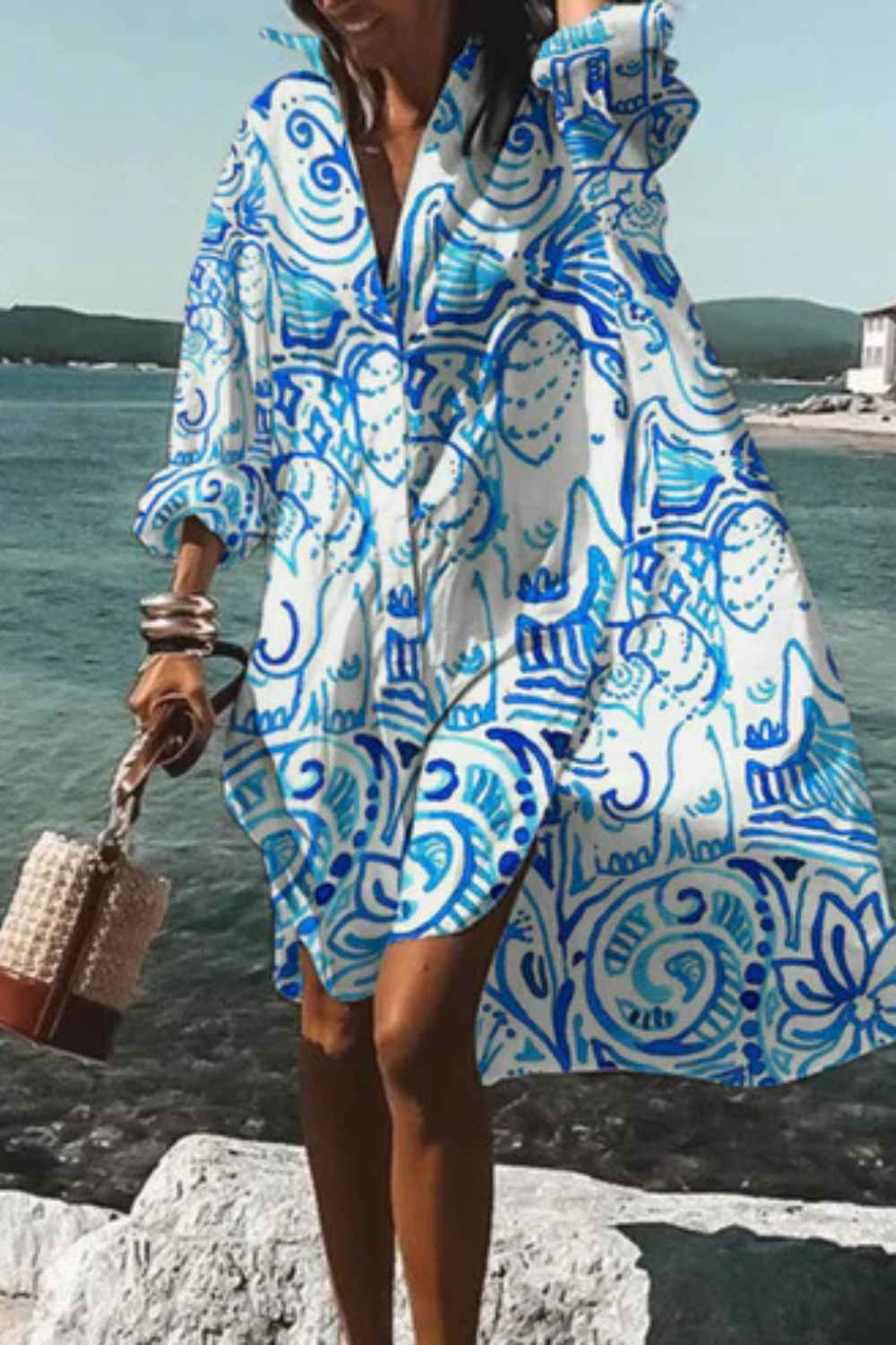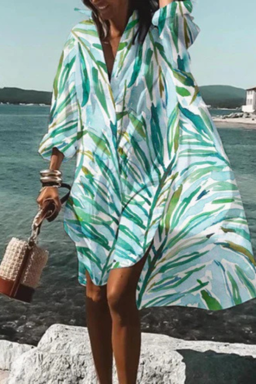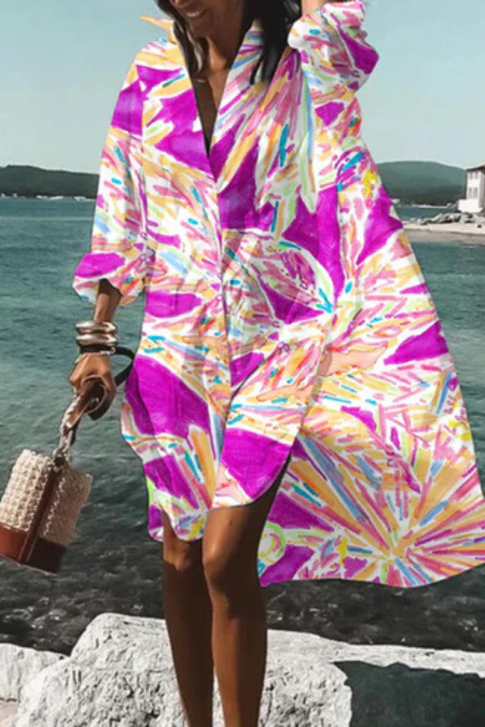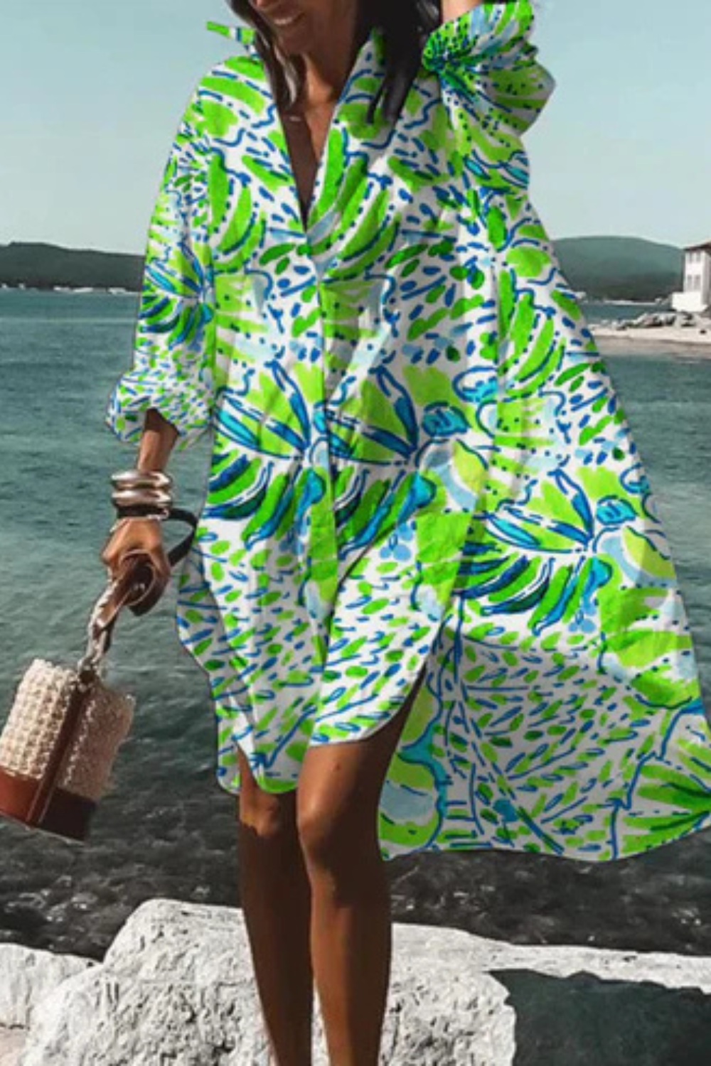 Dieses Kleid vereint sommerliche Leichtigkeit mit moderner Eleganz. Der lockere Schnitt und der ausdrucksstarke Blumenprint machen es zum idealen Begleiter für Urlaubstage, Spaziergänge am Meer oder stilvolle Alltagslooks. Die fließende Form sorgt für Bewegungsfreiheit und eine mühelos feminine Ausstrahlung.