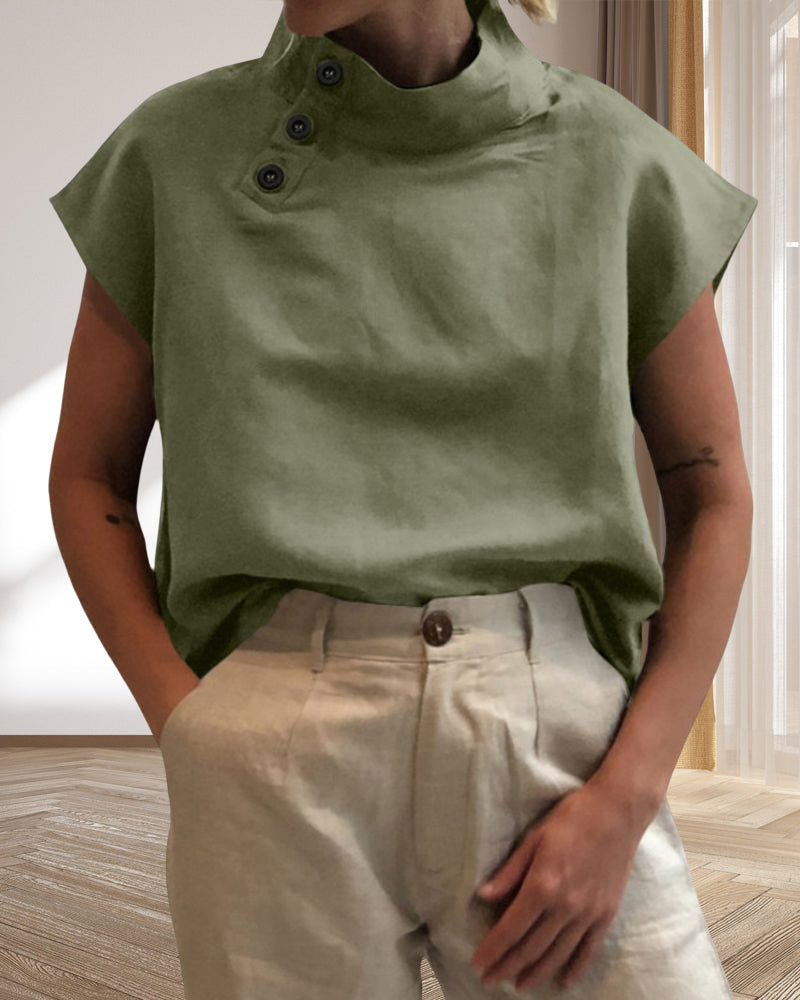 Andrea's™ | Oberteil mit Stehkragen aus Baumwolle und Leinen