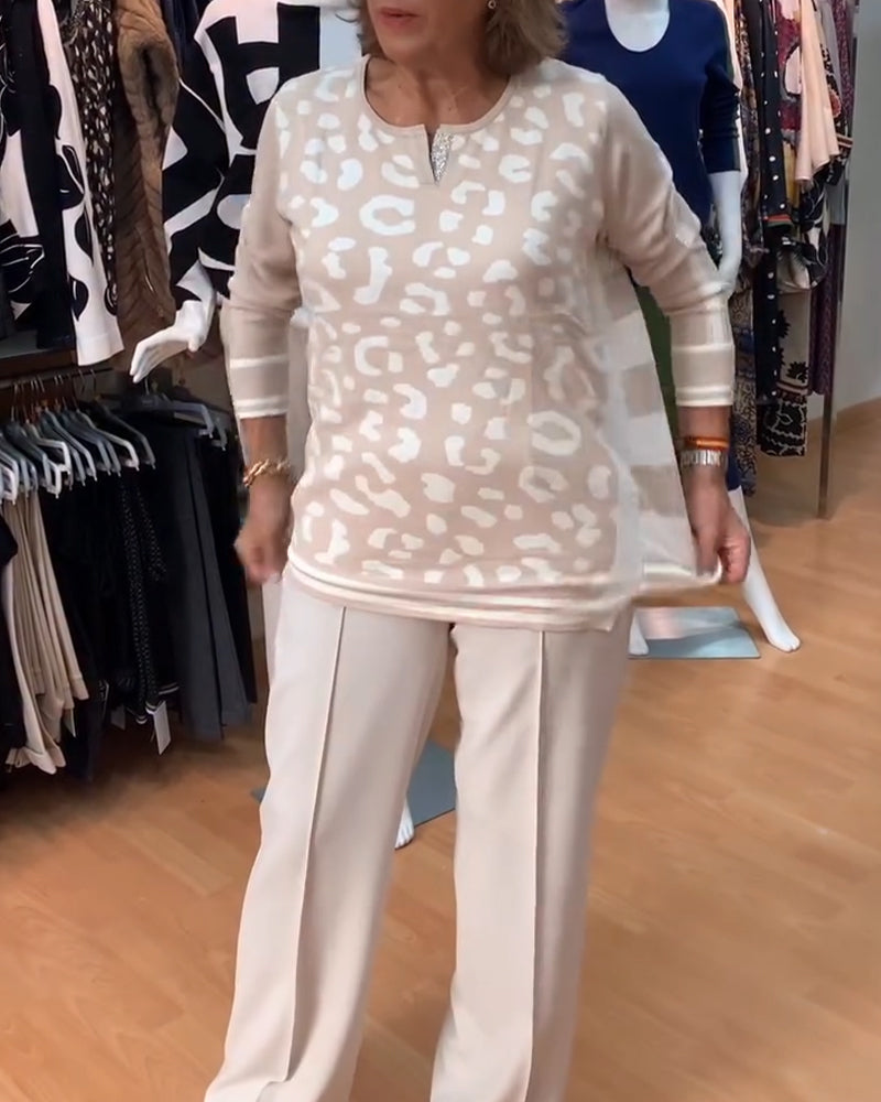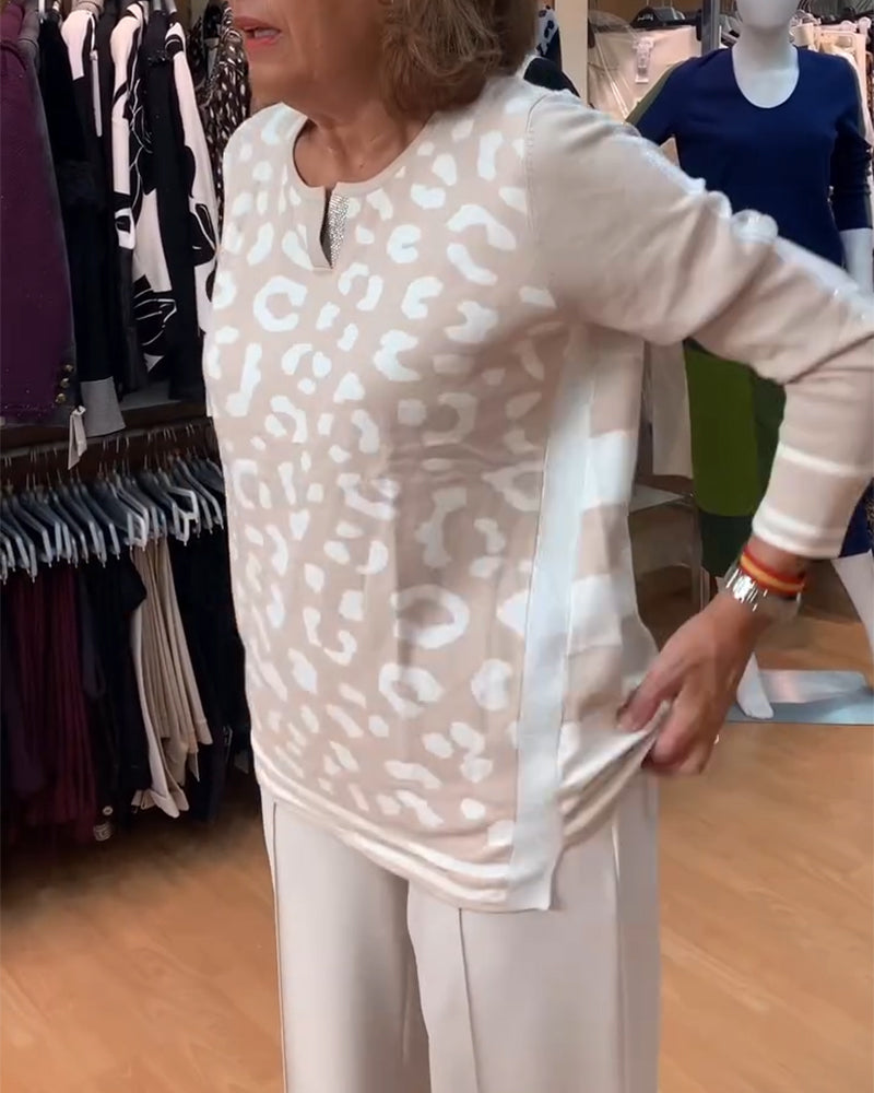 Andrea's™ | Pullover Leopardenmuster Farbblockung