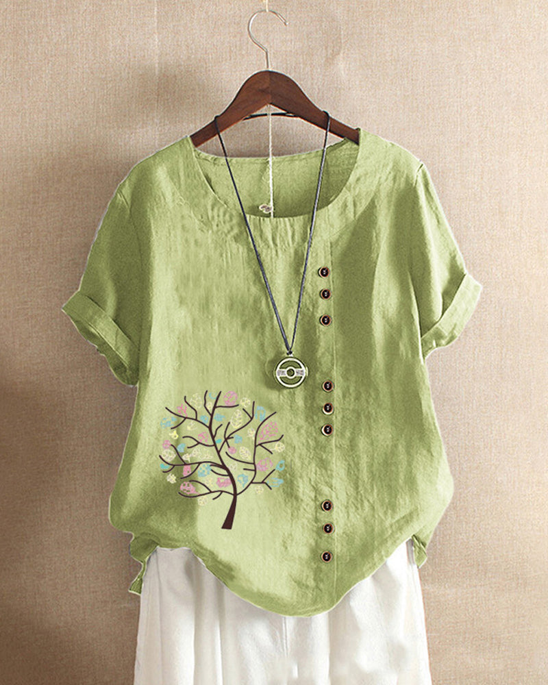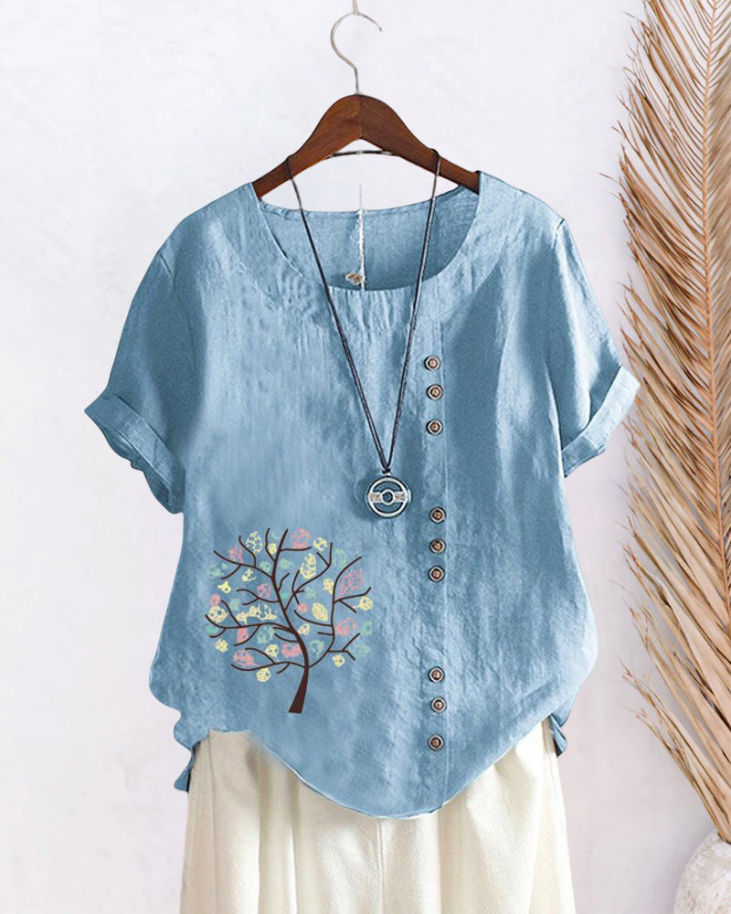 Andrea's™ | Rundhals-T-Shirt mit Blätterdruck
